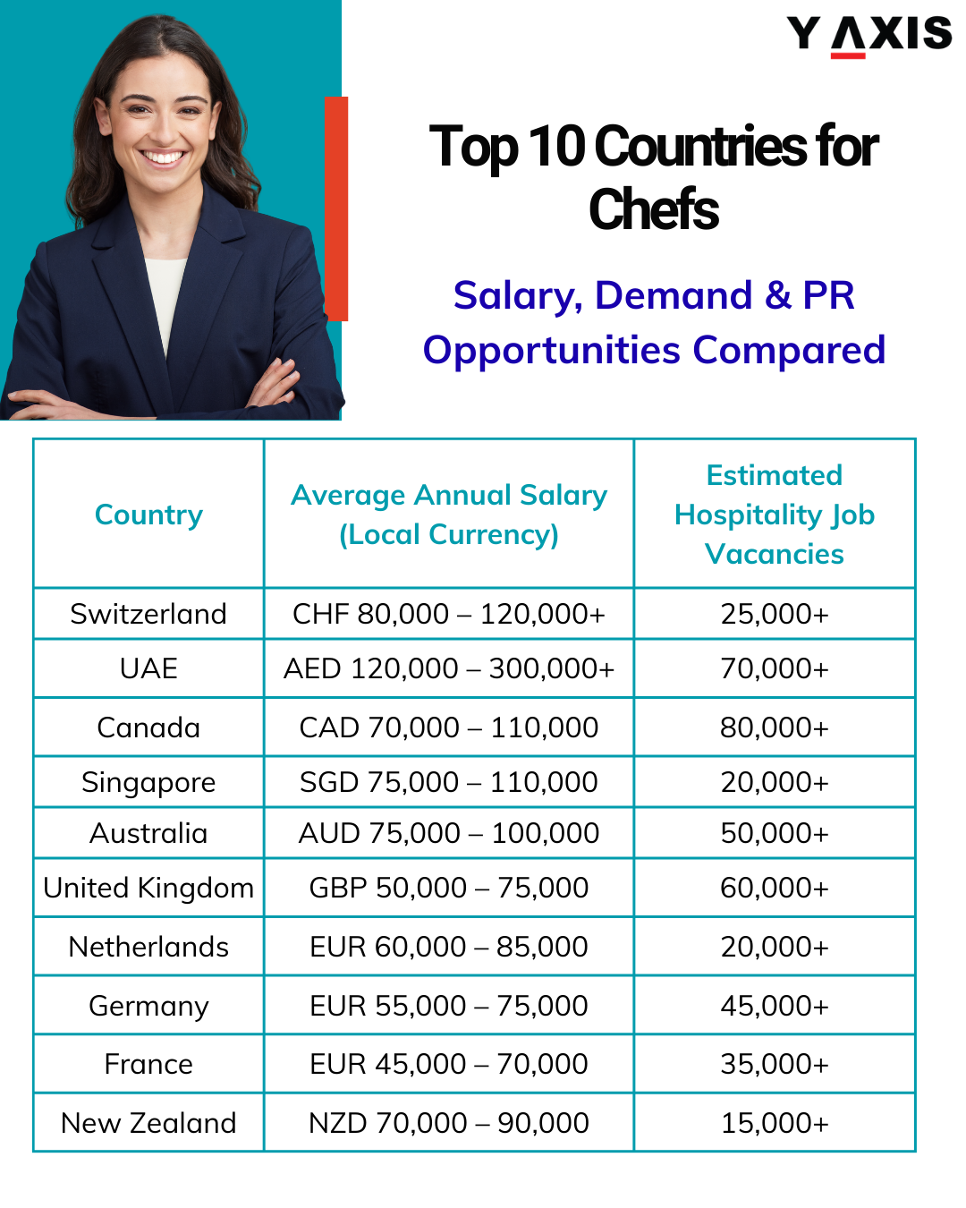 The following list highlights the top countries offering high-paying chef jobs abroad.