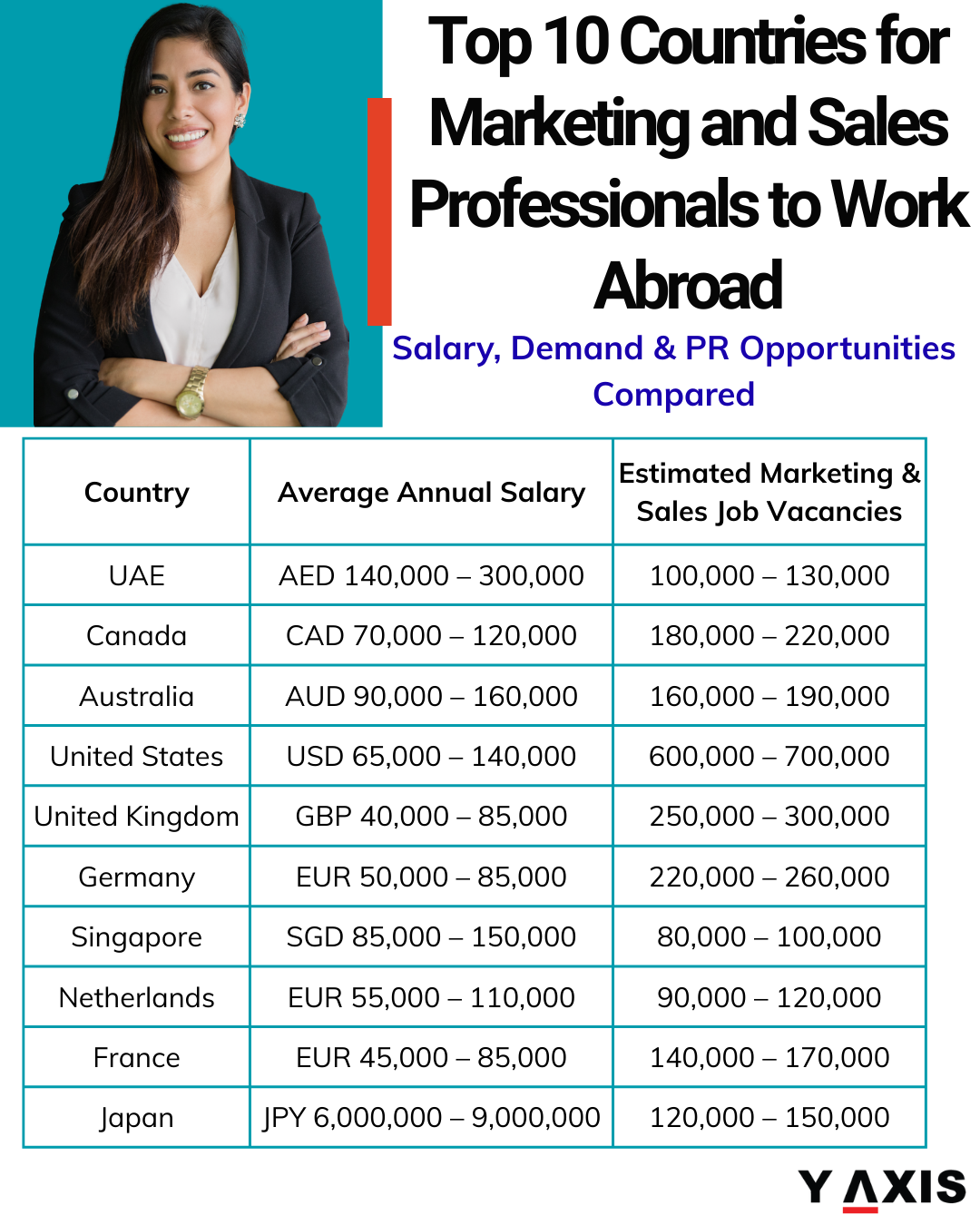List of Top 10 Countries for Marketing and Sales Professionals to Work Abroad: