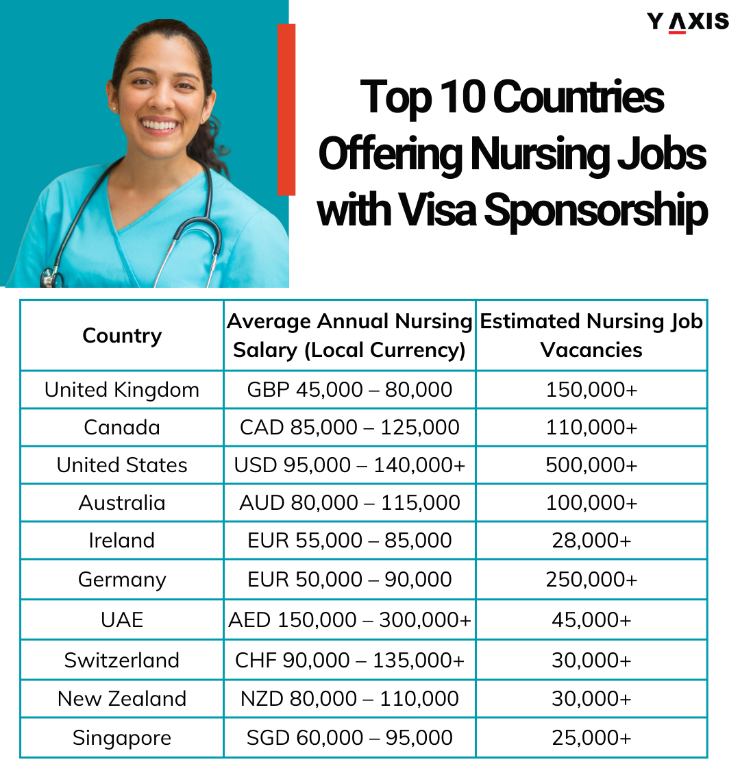 Some of the best countries offering nursing jobs with visa sponsorship include: